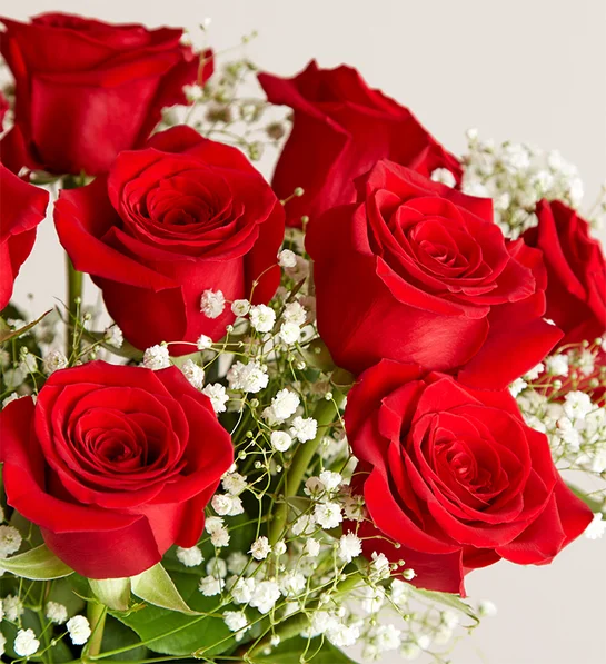 Our Blooming Love™ Premium Red Roses distinguish themselves through outstanding features: First, every rose stem is hand-picked at peak bloom, ensuring maximum freshness and longevity. Additionally, our expert florists artfully combine these stunning roses with delicate baby’s breath, creating a classic yet sophisticated presentation in our signature red glass vase.